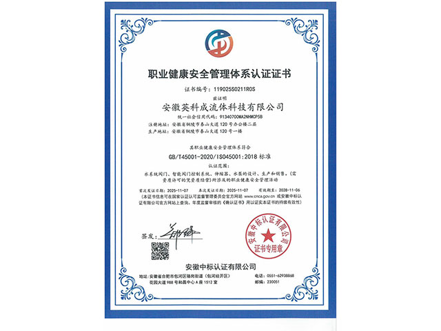 • 職業(yè)健康安全管理體系認(rèn)證證書